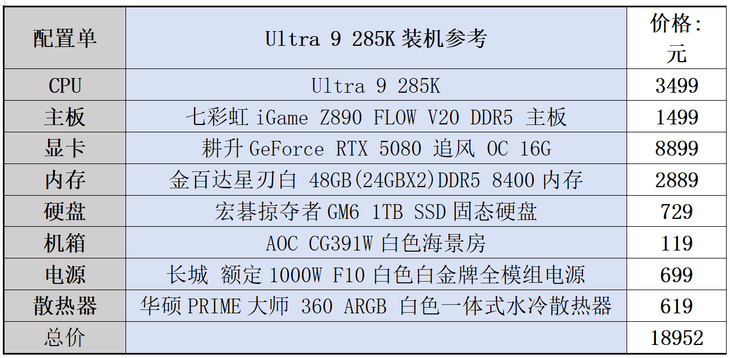 搭配 Ultra 9 285K 自然就要选择旗舰级的配置,无论是主板还是显卡都可以尽可能选择高配。下面为大家推荐一套旗舰级的装机配置参考,大家也可以根据自己的使用需求或者预算变化进一步修改。