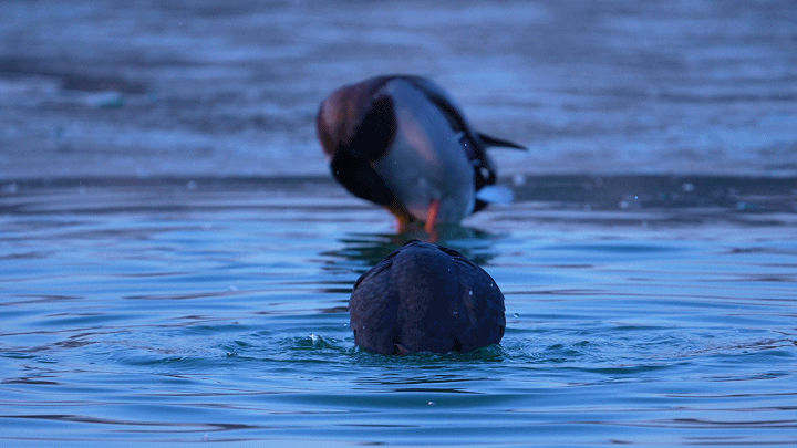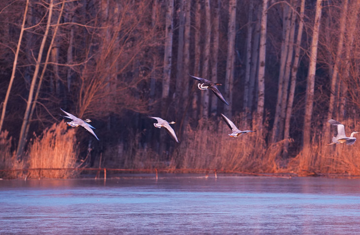比如上面这组拍摄鸿雁在水面煽动翅膀的画面时,多次因反应不及错过“舞动”的瞬间,而开启预拍摄后,即使快门稍慢一步,也能从缓存中找到最完美的姿态与环境相融合的画面,堪称 “抓拍神器”。