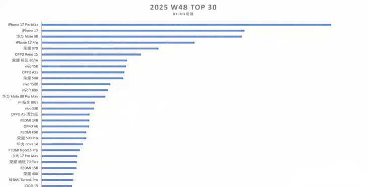 并且华为Mate 80标准版成功跻身销量榜前三,终结了iPhone 17系列连续多周独占前三的垄断局面,以实打实的市场表现印证了这一代产品的强大实力。
