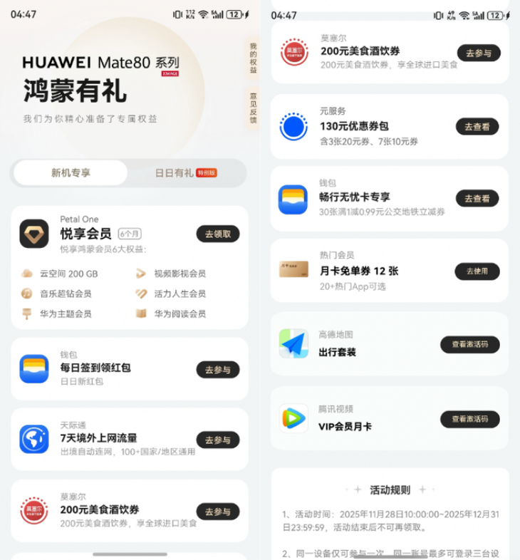 值得注意的是,叠加多重优惠政策后,华为Mate 80系列的性价比进一步凸显:购机可领取1200元鸿蒙有礼权益、至高1000元鸿蒙日日新签到红包,叠加以旧换新300元补贴,合计优惠可达2500元;同时支持12期分期免息,部分地区叠加国补后,实际入手成本可低至2000元左右。产品矩阵方面,华为Mate 80适配普通用户均衡需求,华为Mate 80 Pro主打影像与大屏体验,华为Mate 80 Pro Max和Mate 80 RS 非凡大师则面向高端需求群体,全面覆盖不同层级市场。