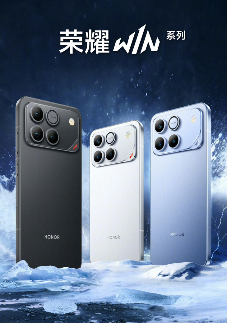 荣耀WIN系列今天正式宣布将于12月26日发布,并在定档海报中展示了两款新机的外观设计,均采用了横向大矩阵Deco风格。这一系列产品被定位为年度电竞夯机,旨在满足游戏玩家的需求。