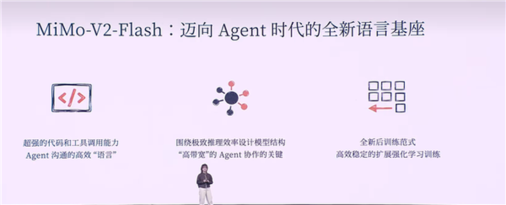 在演讲中,罗福莉详细介绍了小米自主研发的首个推理大模型——Xiaomi MiMo,特别是新版本MiMo-V2-Flash的开源上线。她强调了该模型的三大显著特性。首先,MiMo-V2-Flash具备强大的代码和工具调用能力,成为高效的Agent沟通语言,提升了信息交互的流畅性。其次,模型的结构经过精心设计,以实现极致的推理效率,关键在于支持复杂任务的协同处理。最后,该模型采用了全新的后训练范式,通过高效稳定的扩展强化学习训练,不断优化其性能。