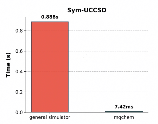 我们还对比了该任务在通用模拟器与 mqchem 模拟器上的执行时间。