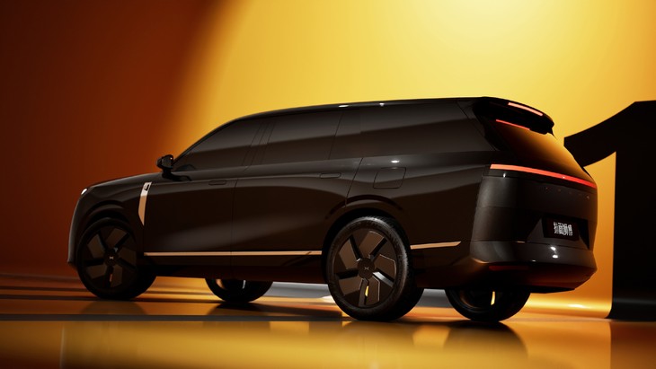 从尺寸来看,这款SUV的长度预计超过5.2米,轴距约为3.1米,简约而流畅的侧面设计结合大尺寸刀锋样式轮圈,使其拥有不俗的气场。车尾设计圆润,与车身线条融为一体,采用了类似特斯拉Model Y的粗壮贯穿尾灯,进一步增强了整体的视觉效果和辨识度。