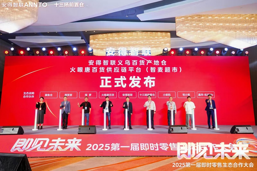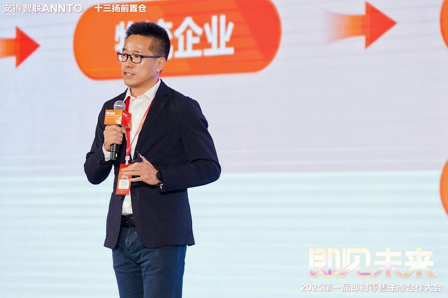 最后,由安得智联即时零售负责人单鹏正式发布“安得智联义乌百货产地仓,火眼唐百货供应链平台(智麦超市)”。平台致力于高效链接品牌货盘与全域零售终端,实现采购、物流、资金、票据全链路可视化与合规保障,旨在为生态伙伴提供低成本、高效率的供应链解决方案,夯实行业高质量发展基础。