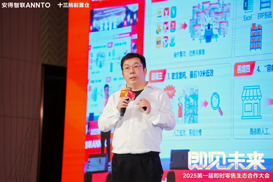 安得智联营销中心副总经理史坤良以《即时零售供应链创新支持新增长》为题,系统阐述了支撑即时零售增长的供应链创新解决方案。在即时零售高速发展的冲击下,行业呈现出三大趋势:品牌方正加速向订单驱动型供应链转型;渠道商呈现“大商化”趋势;零售系统话语权增强。为此,安得智联创新推出“一盘货+融合仓”业态,并依托“智麦超市”SaaS供应链平台及“安链云”系统,实现全链路可视化与高效协同,让客户专注于前端商流,实现物流的无感化运营。