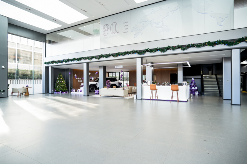 内部功能分区层层递进,构建全场景沉浸式体验空间。开放式展车区将纵横G700的硬朗线条与精致细节完美呈现,让用户直观感受车型魅力;温馨客休区作为“社交空间+休憩空间”的核心载体,为用户打造集交流互动、共创分享、休闲休憩于一体的专属空间,传递纵横细腻的人文关怀。