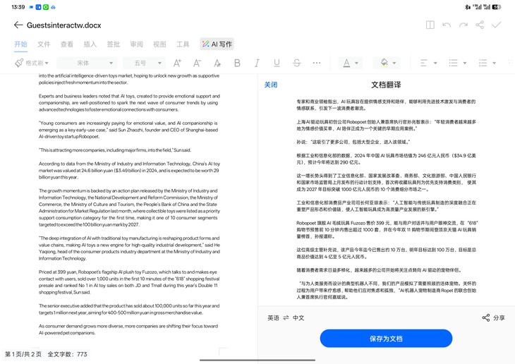 对于英文文献,还可直接实现翻译、摘要功能,极大降低了写作与学习成本。此外,便签手写模式中的“字迹美化”功能,能让手写笔记更工整美观,告别“潦草笔记看不懂”的烦恼。