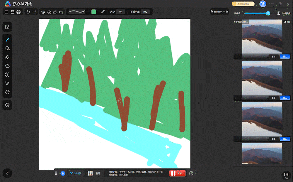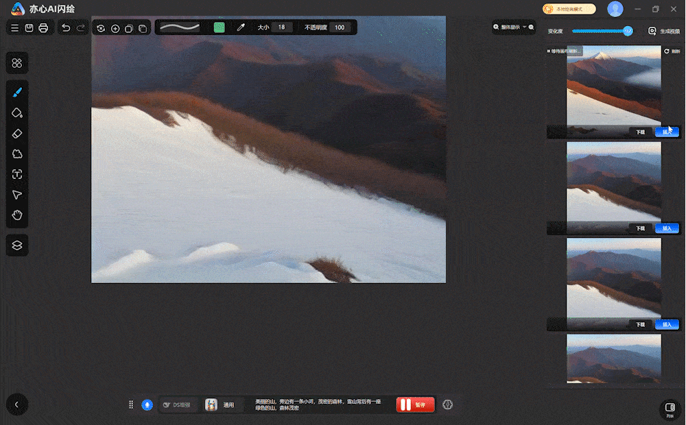 关键词+简单作画就能高效生成样图,实时修改实时反馈,一次修改多次生成,不满意可以继续修改图像或提示词,满意的可以移到左侧继续作为底稿修改,还支持草图重绘、局部修改,创作难度大大降低,灵感释放更迅速。