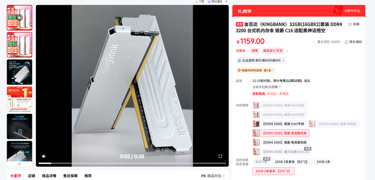 在线上电商平台,存储产品的价格同样呈现出明显的上涨趋势。例如,金百达的一款热销DDR4 32G内存条在今年10月还不到700元,但仅仅两个多月后,价格已飙升至1100元左右;金士顿的一款1T固态硬盘,今年2月初时仅需300多元,现在价格已涨至800多元。业内人士认为,存储芯片市场的涨价主要源于AI挤占产能导致的结构性短缺,预计这轮涨价潮将持续到明年年中。
