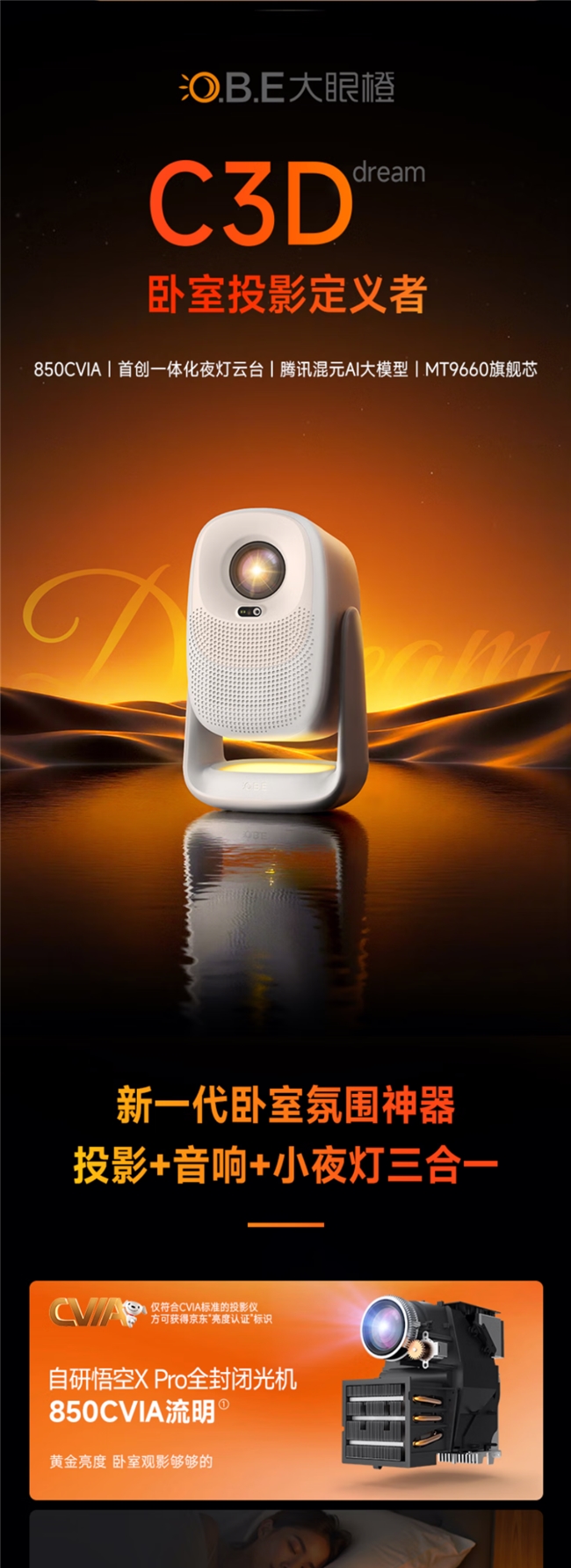 如果你主要在卧室使用,关注护眼、智能化语音交互以及防尘耐用性,C3D 的全封闭光机和AI大模型加持,性价比极高。