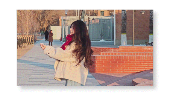 主角运镜适合旅游街拍,人物与场景丝滑过渡,让画面更有故事感。