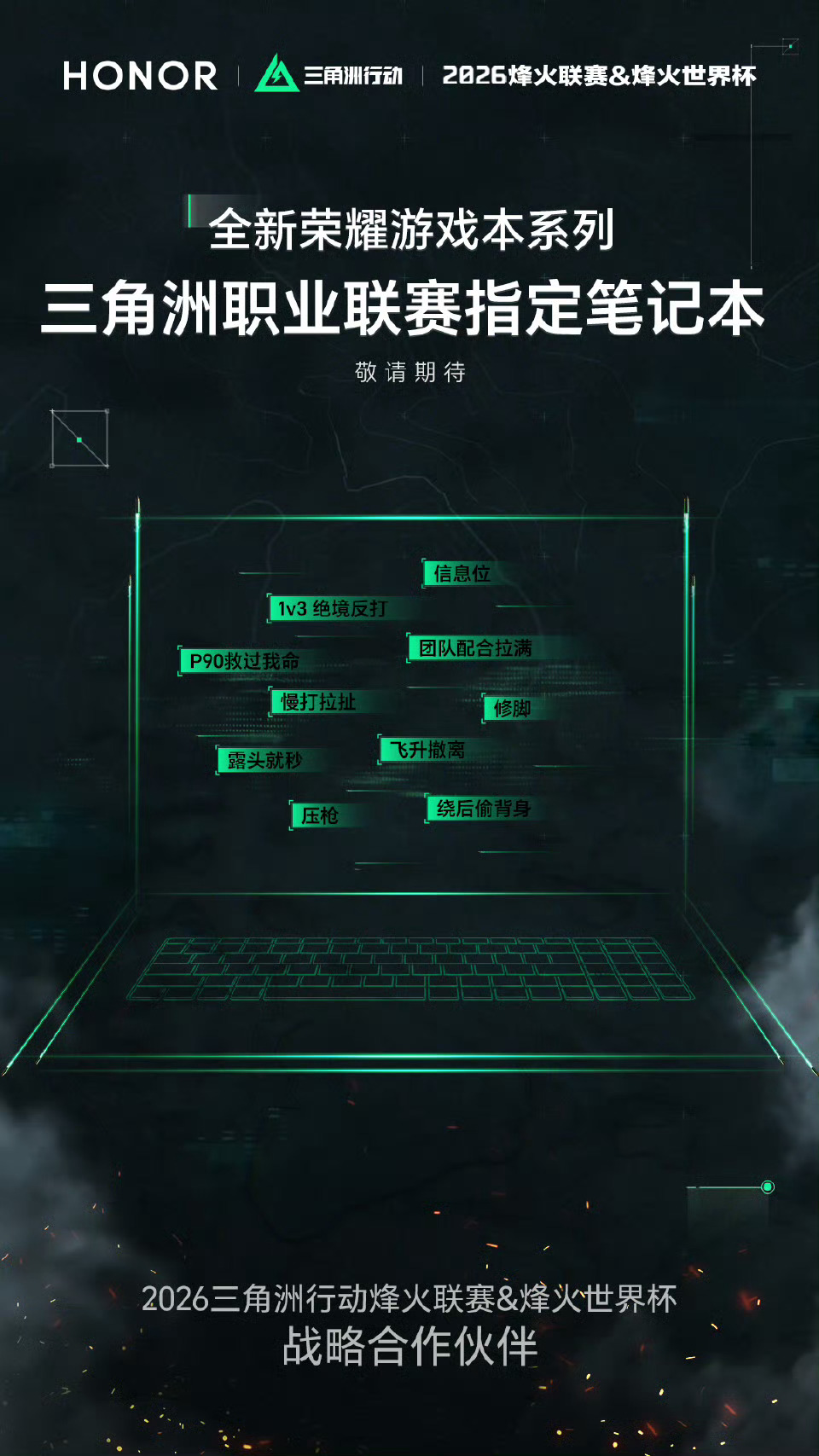 12月26日,荣耀于成都举办新品发布会,正式推出WIN系列电竞手机,并宣布与《三角洲行动》烽火职业联赛达成深度战略合作。与此同时,荣耀官方确认,其备受期待的全新游戏本产品将于明年正式发布,标志着荣耀全面进军高性能电竞装备领域。