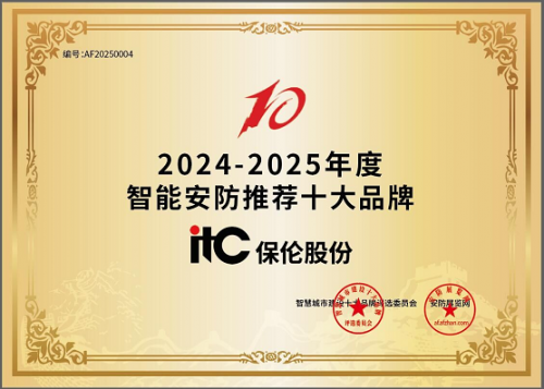 国内安防行业领军品牌!itc保伦股份荣获“2024-2025年度智能安防推荐十大品牌”