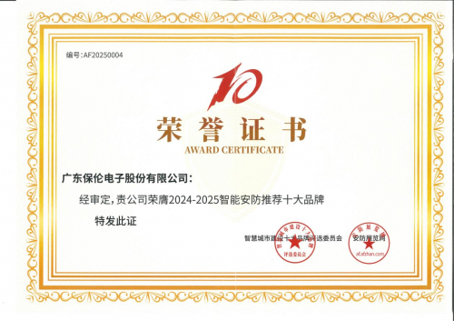 汇聚品牌力量,赋能行业升级。近日,由智慧城市建设十大品牌评选委员会、安防展览网、智慧旅游网、智慧医疗网联合主办的“2024-2025年度智慧城市十大推荐品牌”评选榜单重磅揭晓。其中,广东保伦电子股份有限公司(简称“itc保伦股份”)凭借强大的技术研发实力、持续的创新能力以及卓越的市场表现力,荣膺“2024-2025年度智能安防推荐十大品牌”。