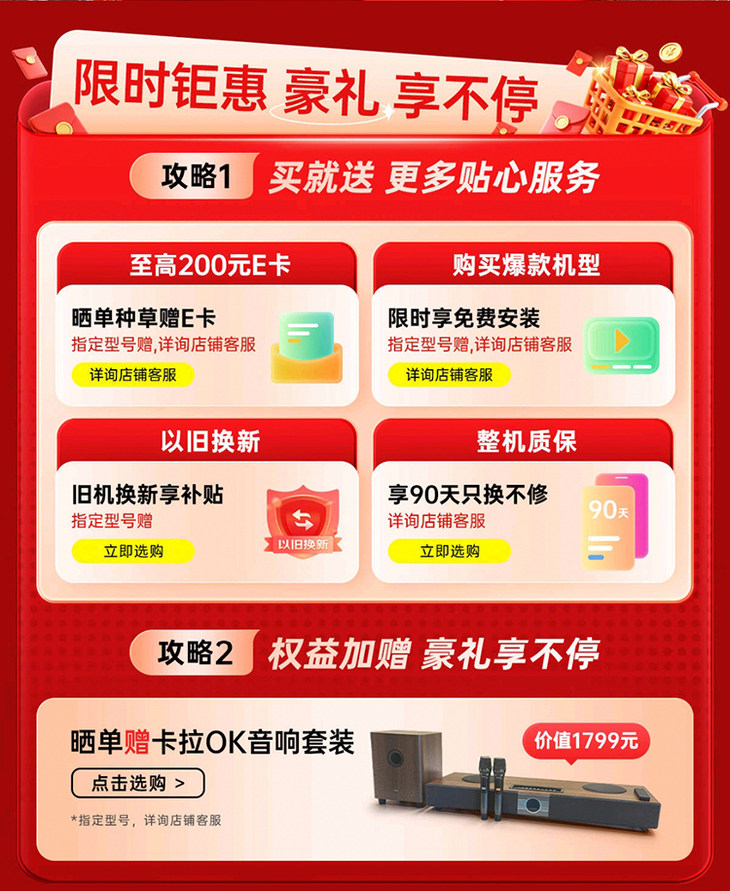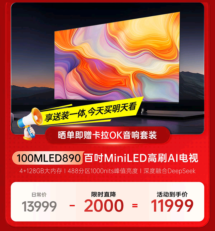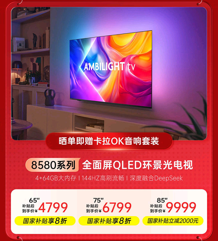 双旦臻情礼遇,美好如期而至!飞利浦电视开启限时狂欢钜惠,甄选好机直享超值福利价,更有多重专属豪礼倾情相赠,包括晒单种草赠E卡、限时享免费安装、旧机换新享补贴、享90天只换不修等,购指定机型晒单即赠卡拉OK音响套装,以硬核画质与卓越体验,即刻焕新你的影音时光!