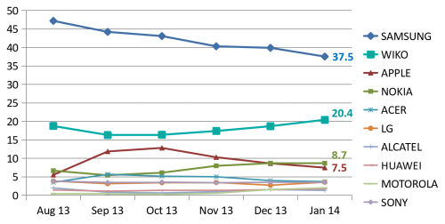 (来源: 2014年1月法国公开市场份额GFK报告)