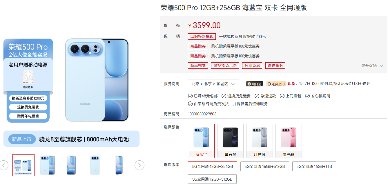 荣耀500 Pro售价3599元,叠加国补和以旧换新之后价格更加优惠,是非常值得推荐的。