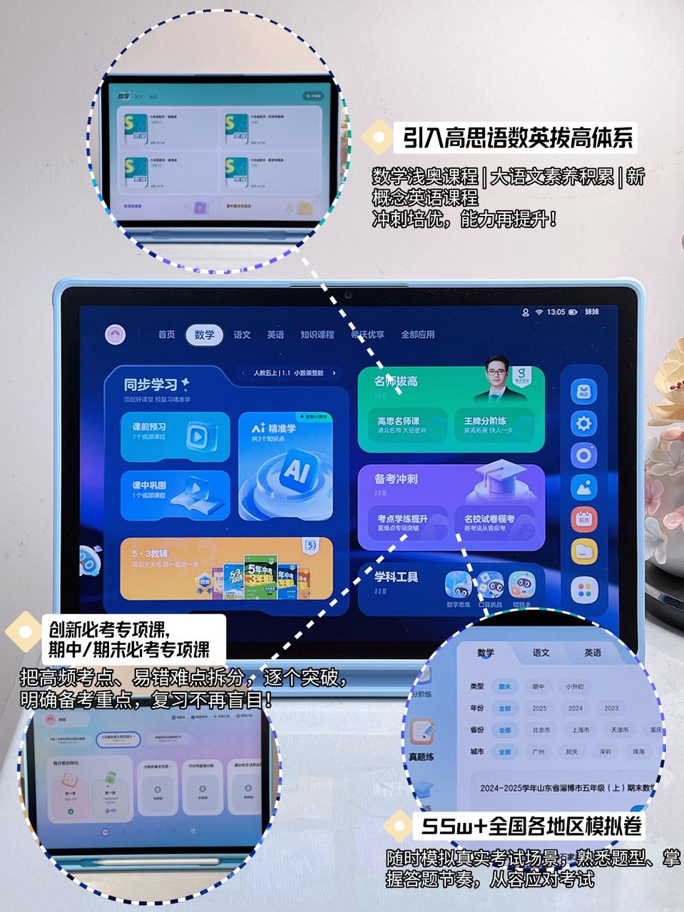希沃AI 学习机V20面向小学、初中乃至高中学生,强调“校内巩固”与“校外拔高”相结合,利用AI技术实现高效提分,同时兼顾移动便携性。