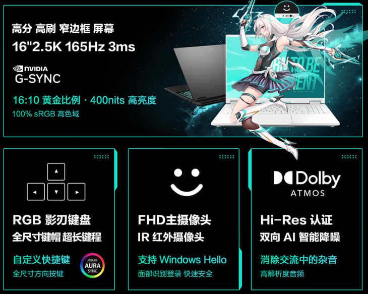 屏幕方面,华硕天选6 Pro锐龙版配备16英寸16:10黄金比例高刷电竞屏,拥有90%的屏占比,带来更沉浸的视觉感受。屏幕分辨率为2.5K,支持165Hz刷新率,3ms响应速度,亮度可达400nits,并支持100% sRGB,具备出色的显示效果。