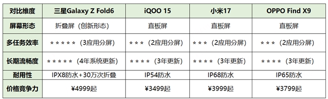 从对比可以看出,三星在折叠屏技术成熟度和长期系统支持方面具有明显优势,而这两点正是2025年用户选购手机时越来越重视的维度。