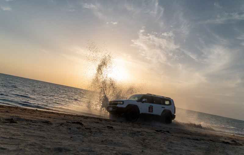 面对砾石尖锐、沟壑纵横的戈壁赛道,14种地形模式精准适配路况,强劲扭矩搭配毫秒级响应四驱系统,让车手可以明显感知车轮咬合沙粒的稳重;加之G700赛事级三把锁+35°接近角、28°离去角的黄金通过组合,大幅降低复杂路况的通过难度,帮助车手实现快中求稳的从容脱困;雨后的红海沿岸,积水混着泥沙漫过轮毂,G700全域密封焊缝构筑的IP68级严密防线彻底阻隔水分,全维度底盘护板硬抗暗礁撞击,保护核心电路与电机安然无恙,守护车手不断向前。乾崑智驾的全地形识别技术时刻保驾护航,哪怕险境如达喀尔也能智能应对,让极限穿越既安心又从容,也让纵横G700稳稳坐实“穿越之王”的称号。