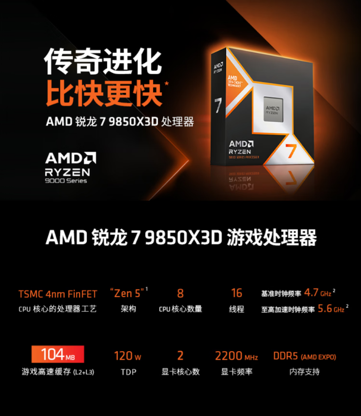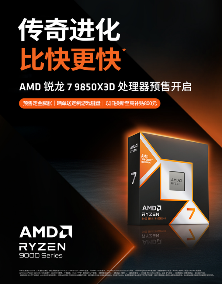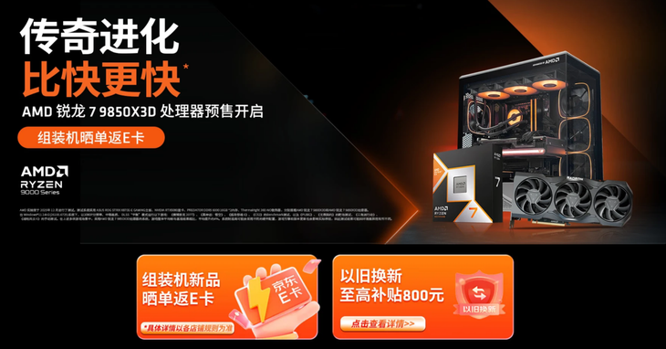 传奇进化 比快更快!AMD 锐龙7 9850X3D及组装机京东预售开启