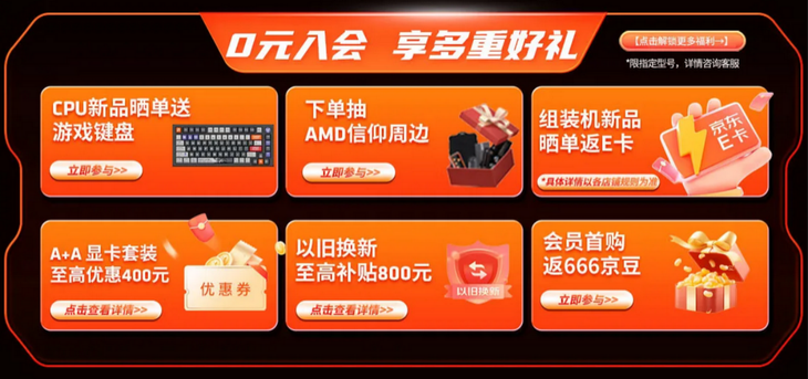 此次AMD 锐龙7 9850X3D处理器及组装机的预售活动从1月22日上午10点正式开启,并将与1月29日晚上10点截止。首先建议大家成为AMD京东自营旗舰店的会员,加入会员之后就可以解锁一系列的福利了,会员首购返666京豆,以旧换新至高补贴800元。CPU新品晒单送游戏键盘,组装机新品晒单返E卡,A+A显卡套装至高优惠400元,下单还可以抽AMD信仰周边。