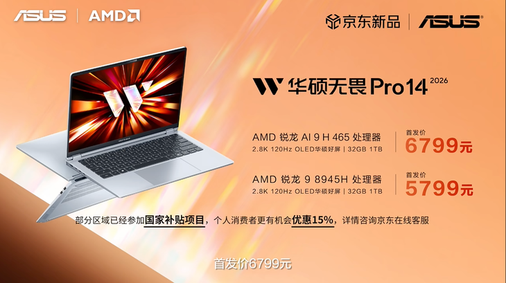 性能与AI实现跨越式突破,华硕重磅发布2026 AMD锐龙AI PC全能本产品阵容!