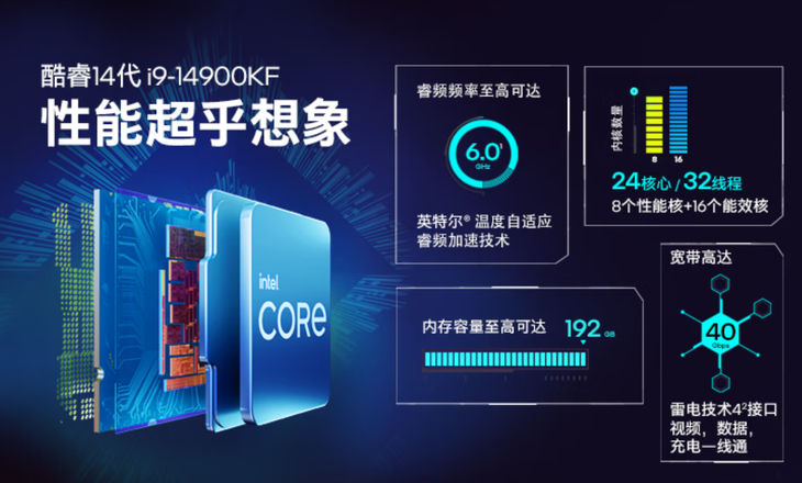 相较于AM4平台,英特尔600/700系列平台同样具备便捷的升级优势,该平台兼容第12-14代酷睿,支持DDR4/DDR5双内存规格,为老用户提供零平台成本的CPU升级路径。首选酷睿 i9-14900KF,这款处理器拥有24 核 32 线程(8P+16E),采用 Intel 7 工艺,3.2GHz 基准频率搭配 6.0GHz 睿频(P 核),36MB 三级缓存,多核性能较 i9-13900KF 提升约 15%,较 i7-14700KF 提升约 30%,在 AI 大模型推理、8K 视频编码 / 剪辑、3D 建模批量渲染、多线程服务器级办公等重度生产力场景中表现碾压级,远超同代 i7 型号。目前全新盒装价格约2900 元,,多任务并行与数据吞吐效率大幅提升,程序加载与渲染速度显著加快,同时支持超频,搭配 Z690/Z790 主板可进一步挖掘 P 核超频潜力,适合专业 AI 开发者、8K 视频工作室、3D 渲染师、需要同时运行数十个任务的重度办公 / 小型服务器用户,游戏性能也能轻松驾驭 4K/8K 3A 大作。