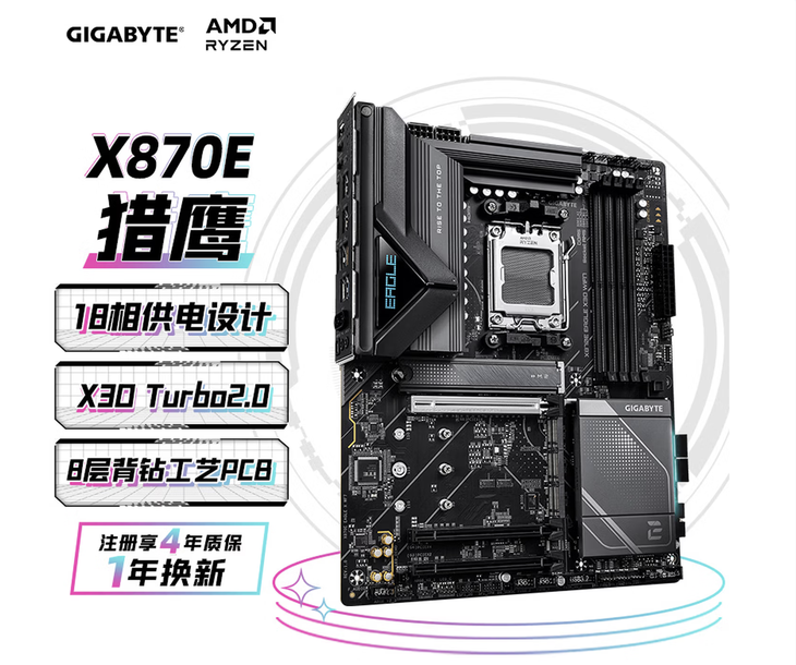 技嘉X870E EAGLE X3D WIFI7开售,X3D专属优化售2299元