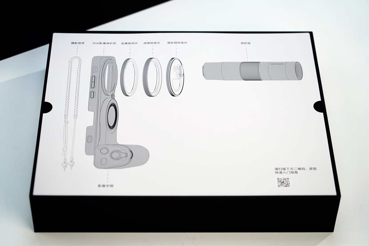 专业摄影套装拥有非常丰富的配件,包括摄影背带、RSR影像保护壳、金属装饰环、滤镜转接环、增距镜转接环、摄影手柄、增距镜、数据线、收纳袋。