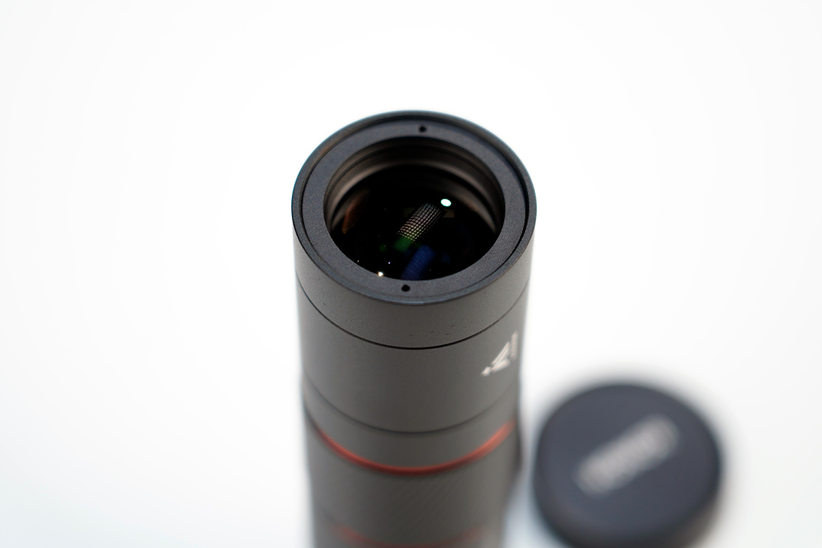 增距镜的做工十分的精细,在镜头上有螺旋花纹,提供更好的手感,而且有两条红色的装饰线,体现摄影的专业性。