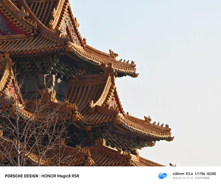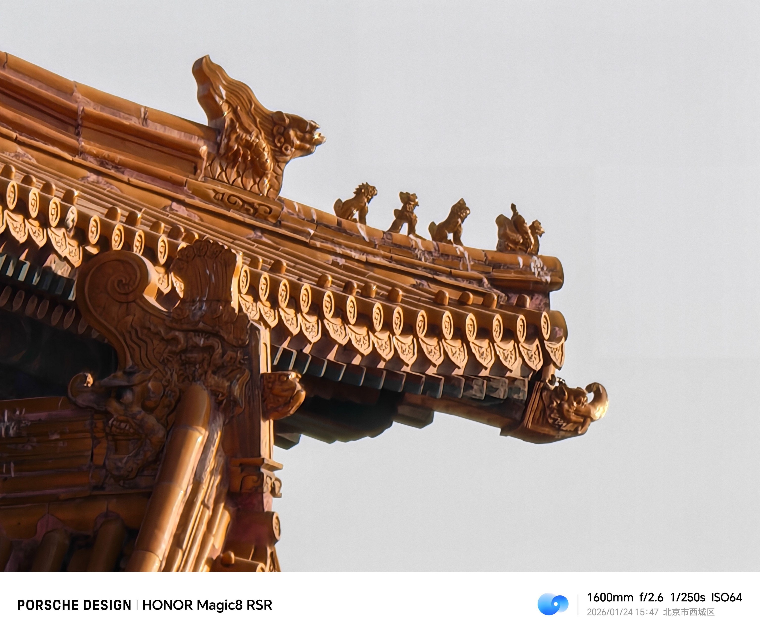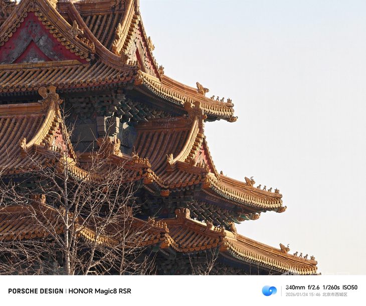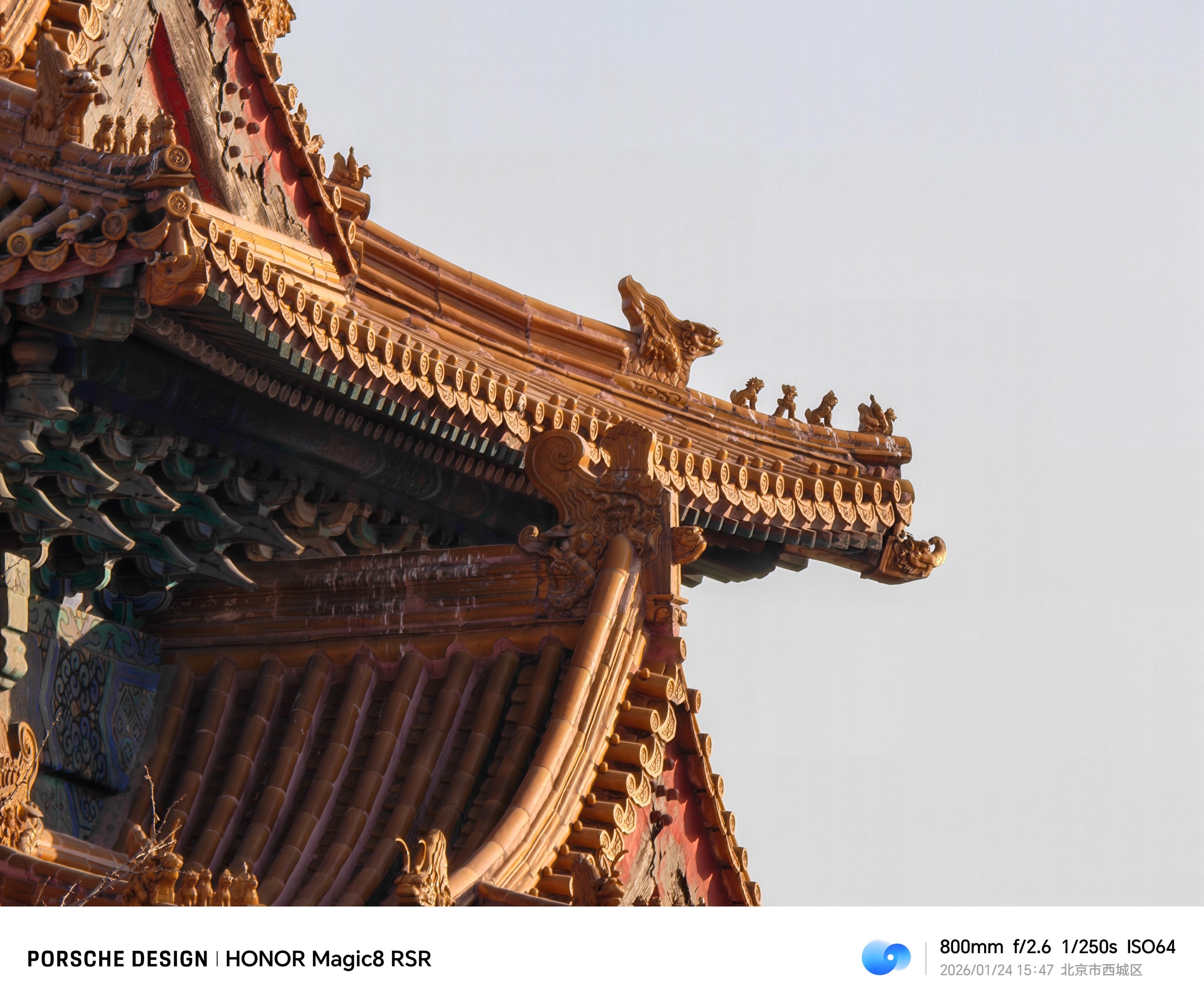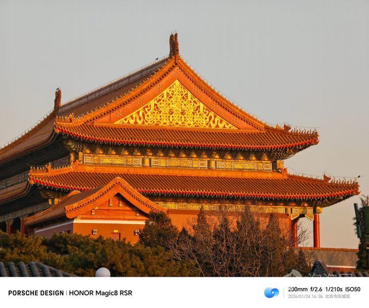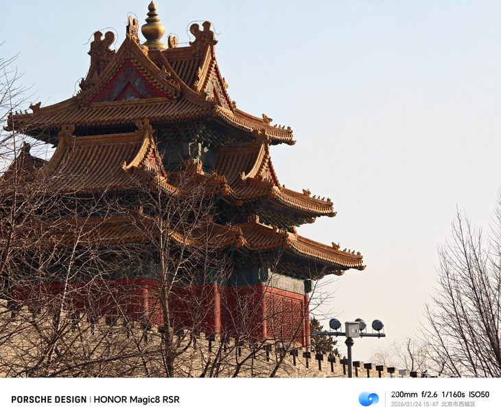 荣耀Magic8 RSR保时捷设计的增距镜可以直接拍摄200mm焦段的照片。