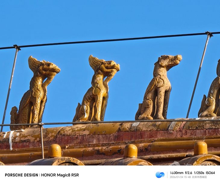 换一个场景,使用增距镜拍摄的400mm焦段可以将屋顶脊兽全部清晰的记录下来。