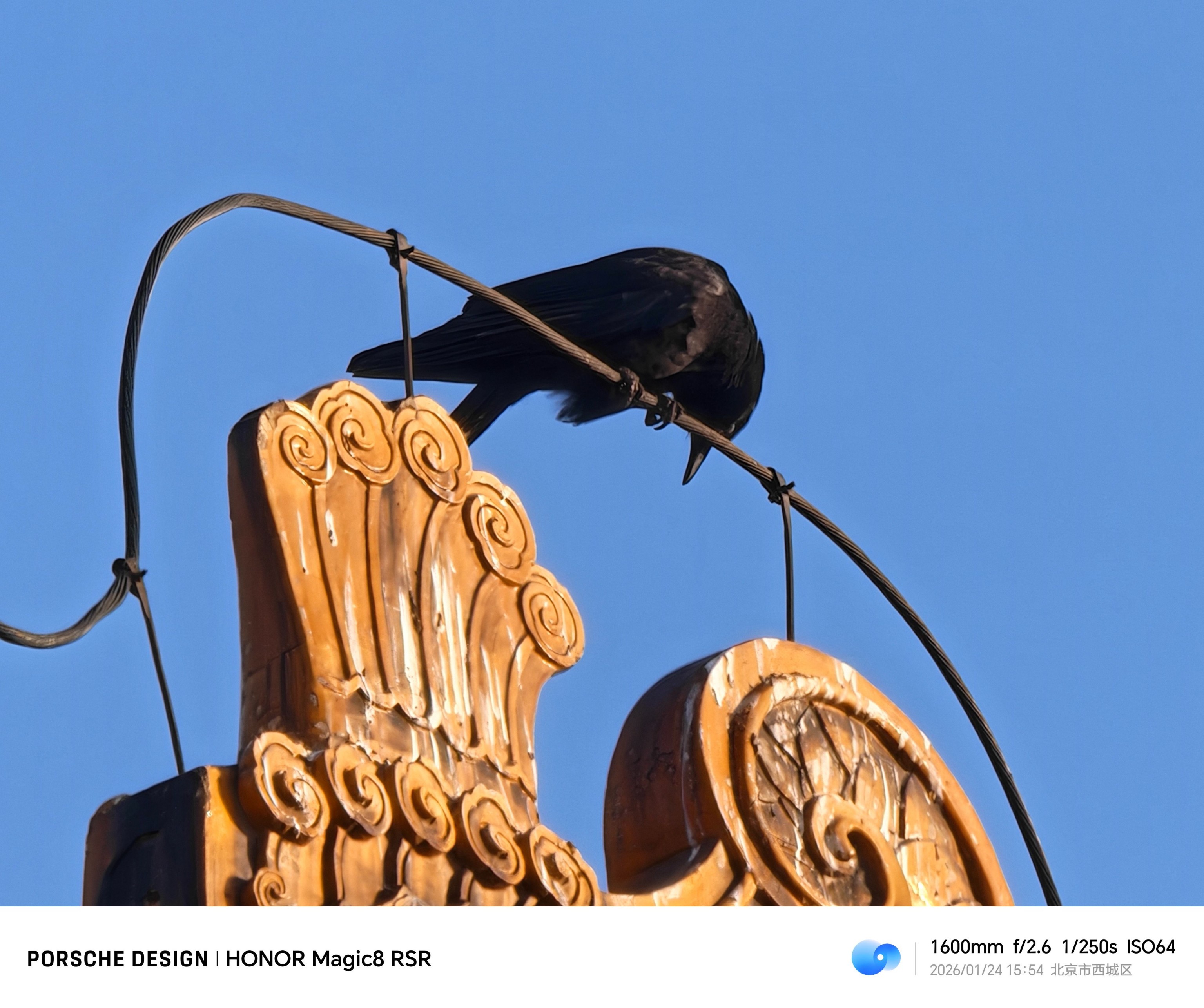 拍鸟也是长焦常用的场景,相较于专业的长焦相机,荣耀Magic8 RSR保时捷设计配合增距镜可以说是非常轻便的,拍摄的效果也十分的不错,抓拍表现也能够满足拍鸟的需求。