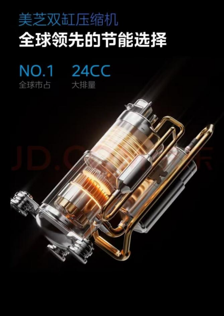 搭载 24CC美芝双缸压缩机,并标配电子膨胀阀,使换热系统在高负载工况下依旧保持高效、稳定运行。