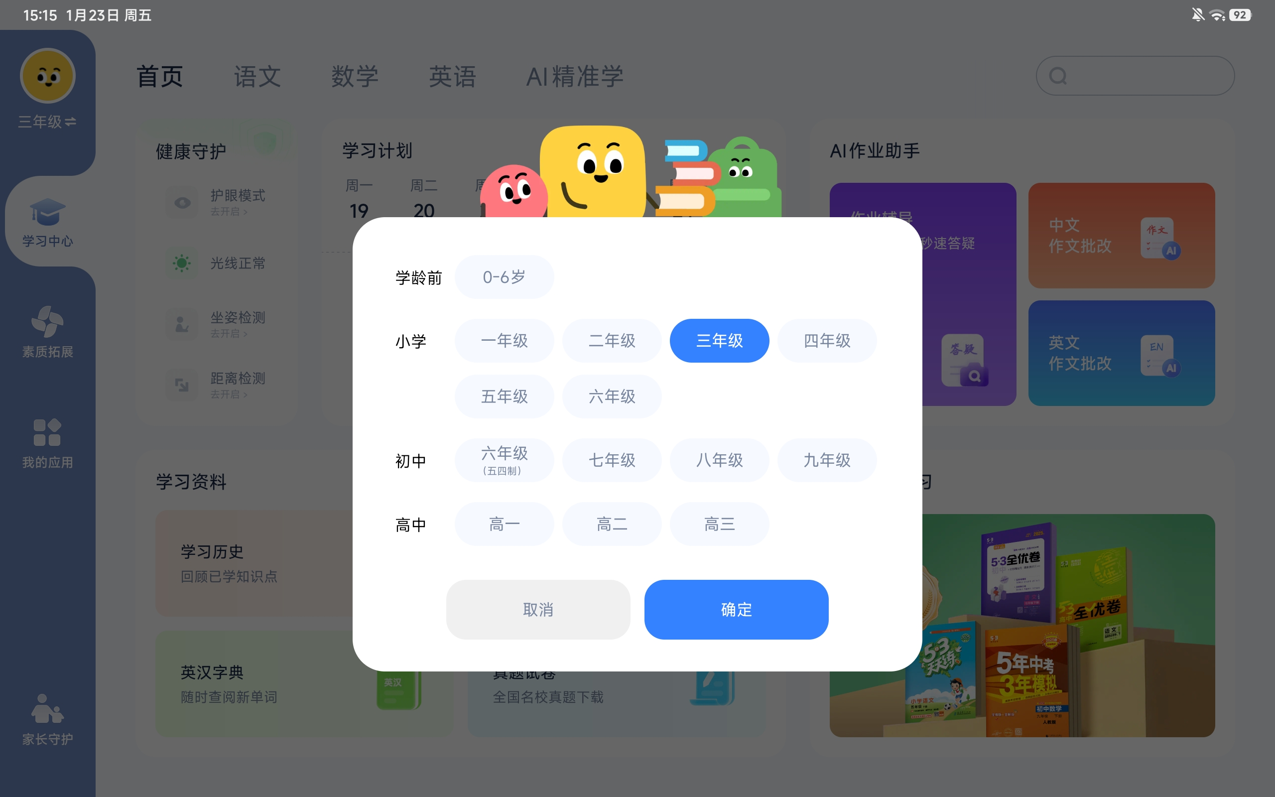 这是REDMI Pad 2 Pro最核心的优势,作为千元价位的平板,它可以实现小学至大学的全学段AI助学,内置的小米教育中心堪称“全能教辅库”,小学阶段有《5.3天天练》同步练习,初中、高中对应《5.3初中同步》《5.3高中全优卷》,课前预习、课中练习、课后复盘全场景覆盖,开通教育VIP后即可享受全部教学资源。