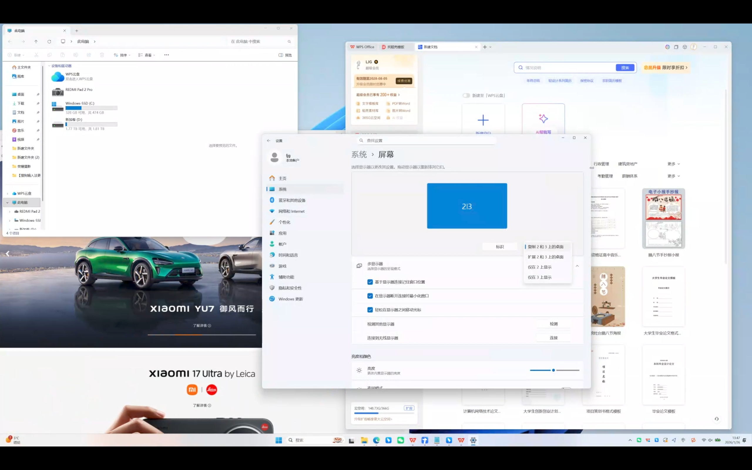 REDMI Pad 2 Pro作为副屏,可以像传统显示器那样复制或者扩展主显示屏的内容。