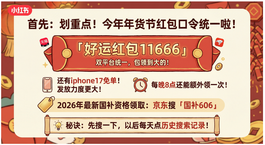 从领券中心,到商品页,再到隐藏券入口、红包口令玩法,只要掌握方法,就能在年货节期间轻松拿到更实惠的价格。