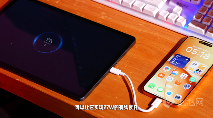 100W有线快充的回血速度也很快,而且兼容100W的PPS协议。这么大的电池不光不需要充电宝,还能把手机变成充电宝。用上这根自动反充数据线,可以让它实现27W的有线反充,拿来给其他设备应急真的太方便了。