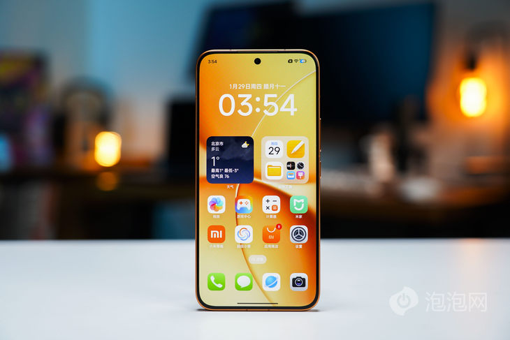 正面是6.83英寸直屏,采用华星M10发光材料,有着3500nits峰值亮度和120Hz刷新率、480Hz触控采样率、2560Hz瞬时触控采样率。屏幕下边框控制在了1.78mm,几乎是四边等宽,R角与机身高度一致,使屏幕观感更协调,不会出现“猫耳朵”。它还支持小米青山护眼,新增了睡眠屏功能,晚上起夜看眼手机,亮度是柔和渐变提升的,减少了对眼睛的刺激。