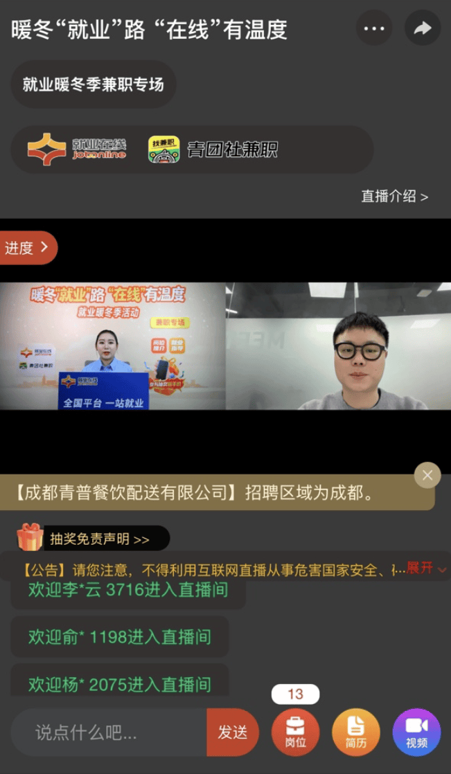 青团社携手“就业在线”开启直播带岗,助力灵活就业“暖冬”升温
