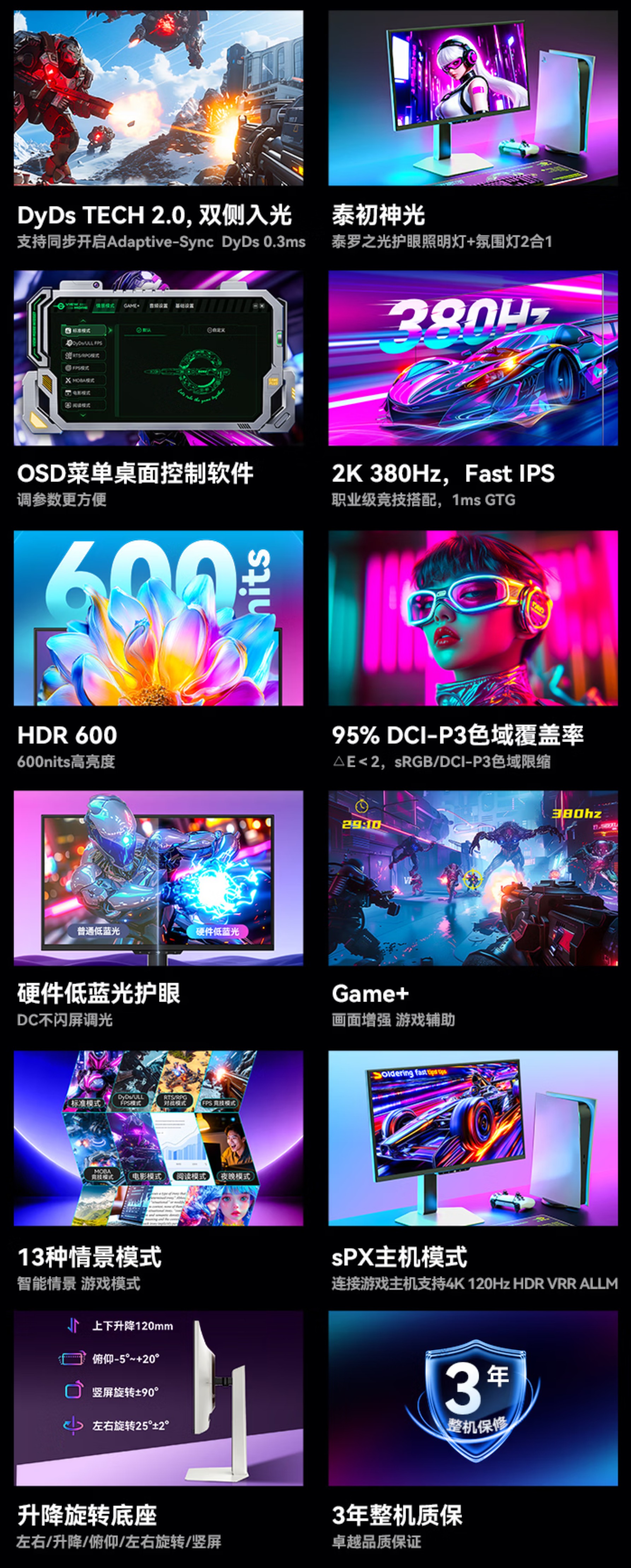 泰坦军团推仓刀X256T电竞显示器,2K 380Hz超高刷售1999元