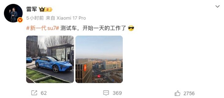 2月12日上午,雷军在个人微博晒出新一代SU7测试车实拍,并配文“新一代SU7测试车,开始一天的工作了”,直观展现了新车上市前的紧张测试状态。这条微博迅速引发网友热议,有网友在评论区询问“雷总还是亲自开车测试吗?”,雷军随即回应称,自己已多次参与新一代SU7的测试工作,甚至曾驾驶测试车完成北京到上海的高速长距离测试。