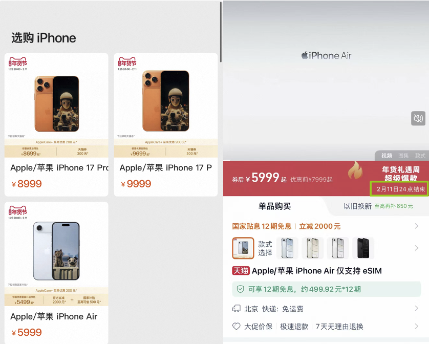 额外优惠400元春节还不打烊 京东入手iPhone Air性价比完胜天猫