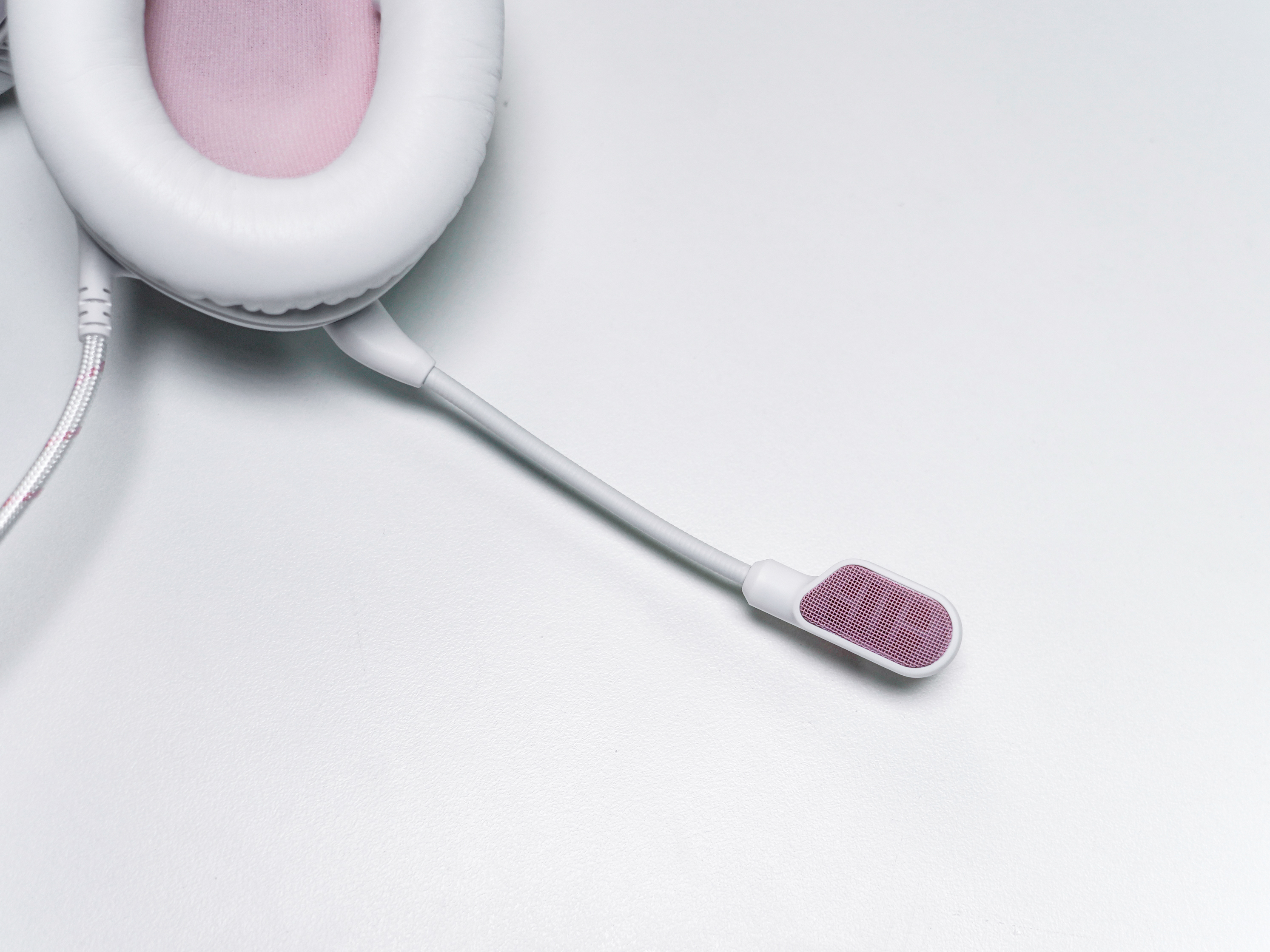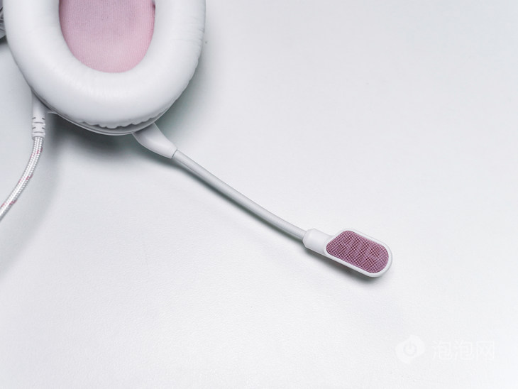 配备的可拆卸麦克风的防风罩部分也采用了粉色的金属织网,并且拥有出色的防喷麦效果,与队友畅通交流,游戏过程更安心。搭载ENC技术,能有效抑制键盘敲击等背景噪音,实测在嘈杂环境中,队友依然能清晰收听语音指令。