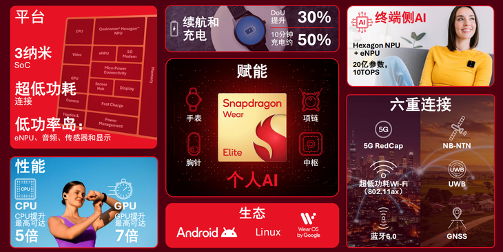 该平台围绕终端侧AI、性能、续航、连接四大核心维度进行全面优化,致力于实现“随时可用的智能体验”,同时兼顾设备小型化与佩戴舒适度。