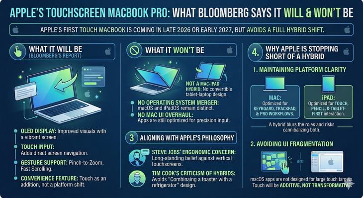彭博社知名记者马克·古尔曼在最新一期《Power On》通讯中披露,尽管M6 MacBook Pro系列预计会采用全新设计的铰链结构,但苹果既不会将其转向二合一产品形态,也不会让macOS提供类iPadOS的软件交互体验。据悉,OLED版M6 MacBook Pro新增的触摸功能,仅会作为提升操作便捷性的补充能力存在,苹果并不会为macOS应用进行适配触摸屏的全面设计重构,因为macOS应用仍将完全围绕键盘与鼠标操作进行定制开发和体验优化。