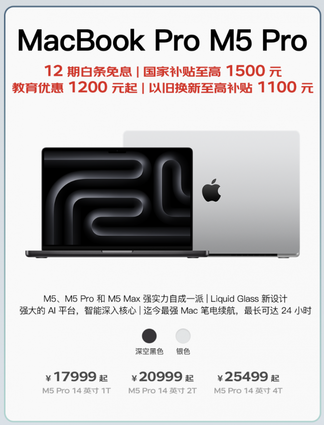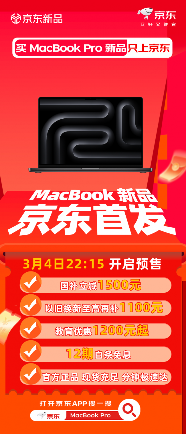 全新MacBook Pro发布 京东国补叠加以旧换新至高优惠3800元